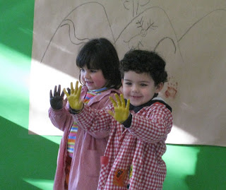 Los cursos de Infantil del colegio Fuente Salín han inaugurado la campaña de 2010 con el desarrollo del taller de Primeros Artistas (en la foto); no podía ser de otra manera siendo un colegio que lleva por nombre el de una importante cueva de arte rupestre en el que su principal elemento son las manos impresas…